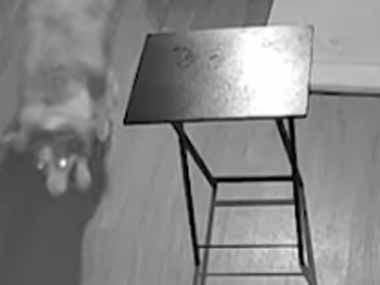 【イヌ】 部屋の真ん中には小さなテーブルがあった。1匹がちょっと当たってビックリ → もう1匹はこうなります…