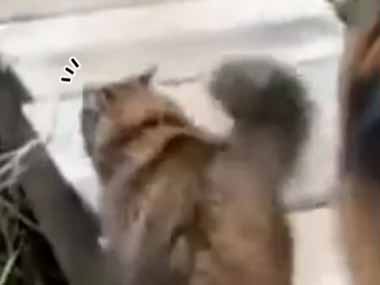 ネコと犬が仲良くハイキングしていた。すると何かに気づいて立ち止まる。どうしたの? → ファッ!?…