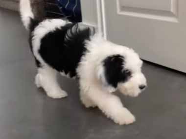 子イヌがそっと部屋に入ってきた。その先にはでっかいモフモフがいる → 子犬はこうしちゃう…