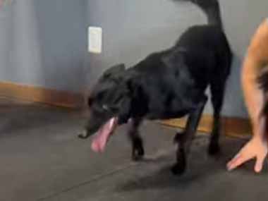 【イヌ】 ジムでカップルがトレーニングをしていた。がんばるワン! → 犬も一緒にこうします…