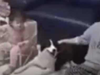 【イヌ】 パパが子供を抱えて遊んでいた。順番だワン♪ → パパは大変です…