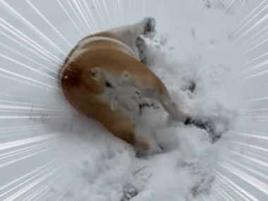 【イヌ】 家の前は少し斜面になっていた。そこに雪が積もっていた → 犬はこうやって遊びます…