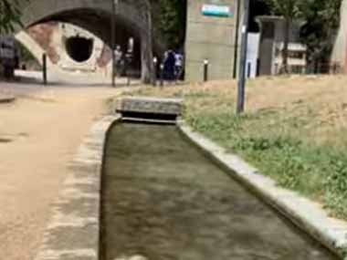静かに流れる浅い水路。