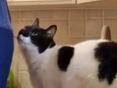 【ネコ】 お父さんが果物を切っていた。そこに猫がやってきた → 甘えん坊はこうなります…