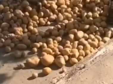 地面に転がっているジャガイモ。