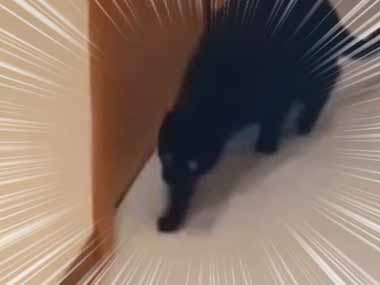 【ネコ】 ドアの下からネズミが出てきた。まてぇ~! 猫が追い詰めて捕まえた → と思ったら…