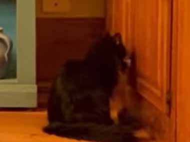 【ネコ】 何やら「バコンバコン」と音がする。何か食い物をくれ! → 猫は無言で棚の扉をこうします…