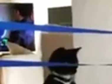 【ネコ】 廊下にテープを貼ってみる。なめんにゃよ! → さすが猫ですね…