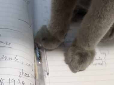 【ネコ】 机の上にノートが置いてあった。私がそこにペンを置く → 猫とのたたかいが始まった…