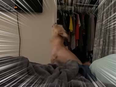 【ネコ】 犬がベッドの上で吠えていた。ワォオ~ン! ちょっとうるさいようだ → 猫はこうした…