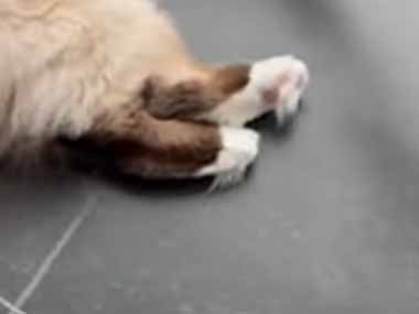 【ネコ】 私が床を掃除していた。モップ付き♪ → 猫はこうなります…