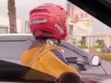 車の窓から顔を出しているのは