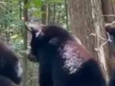 【モフモフ】 子グマたちが木の下で警戒していた。みんな逃げろぉ! → こうなります…