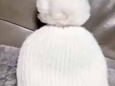 【子ネコ】 ソファの上にニット帽が置いてあった。ぬくぬくにゃ♪ → 中を覗いてみたら…