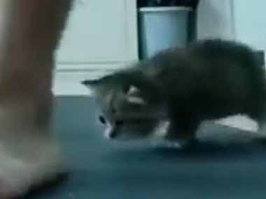 【子ネコ】 飼い主がスクワットをしていたら子猫がやってきた。ちょっ! → 子猫はこうなっちゃう…