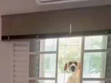 うちのイヌが外から家の中を覗いていた。窓には格子がある → 犬はこうします…