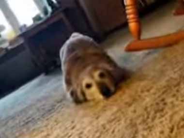 うちのイヌが床にいた。こっちにやってくる → 芋虫ならぬ犬虫です…