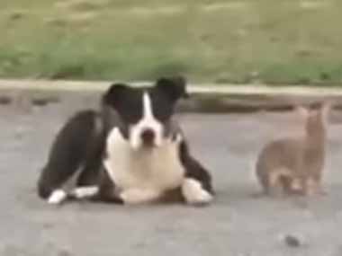 うちのイヌが庭にいた。隣にいるのは友達ですか? → 野良ウサギさんはこうします…