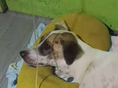 うちのイヌが病気になって点滴を打っていた。ずっとそばにいるよ → 猫はこうなる…