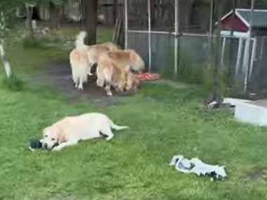 うちのイヌたちが庭の隅に集まっていた。何をしているの? → 1匹はこんな感じ…
