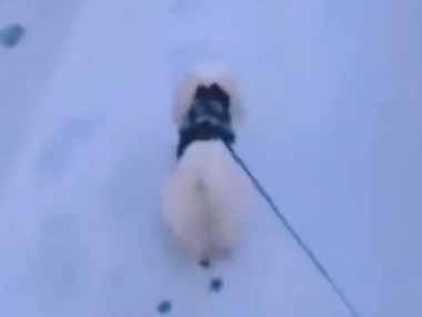 うちのイヌと雪道を散歩していた。すたすたすた♪ → 足跡はこうなります…