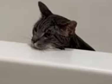 うちのネコがお風呂から出てこない。もう出てきなさい。 ノゥ~! → 猫、拒否します…