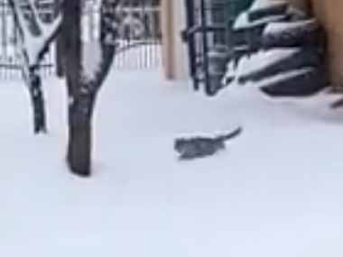 うちのネコが散歩から帰ってきた。雪が深くてちょっと歩きづらい → すると猫はこうした…