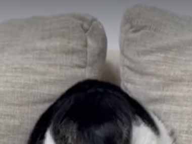 うちのネコはさっきからどうしたの? しっぽをブンブン♪ → ソファでこの顔です…