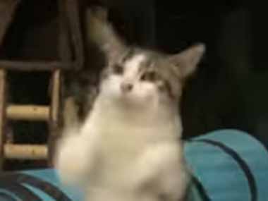 うちのネコは何をしているの? ワンツーワンツー! → 試合に備えて練習中のようです…