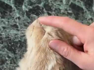 うちのネコは鼻の上を撫でられるのが好き。ナデナデ♪ → こんな鳴き声になります…