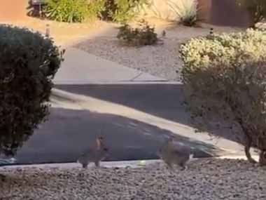 うちの前で2匹のウサギが見合っていた。捕まえてごらんなさい♪ → 2匹は何度もこうなります…