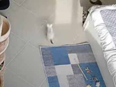 うちの子ネコが床にいた。手を叩いて呼んでみる → 子猫は何度もこうなります…