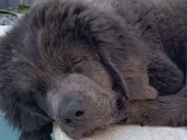 うちの犬がプールサイドで遊んでいた。ちょっと眠くなってウトウトする → こうなっちゃう…