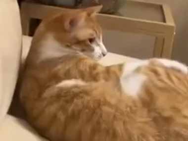 うちの猫がソファでくつろいでいた。するとシッポが気になったようだ → 猫、この動きです…