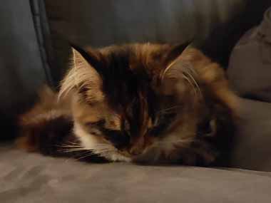 うちの猫がソファでくつろいでいた。動かない。どうしたのかな? → こうなる…