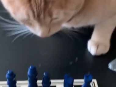 うちの猫とチェスをやってみた。こっちはこの手にゃ! → 考えた猫はこうした…