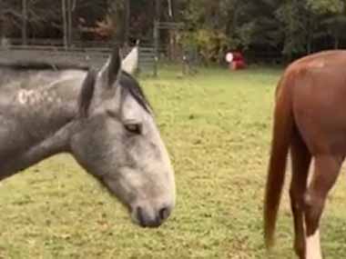 おウマさんを連れて歩くにはどうするの? 手綱をつけるフリをする → お馬さんはこうなります…