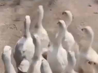 行進するアヒル(?)たち。
