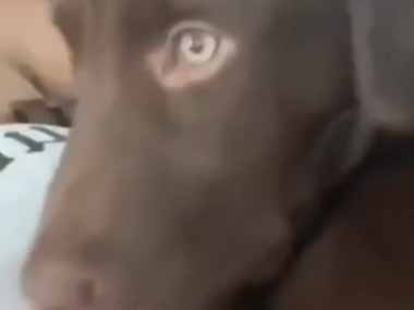 イヌがお姉さんにくっついていた → さりげなくこうしちゃう…