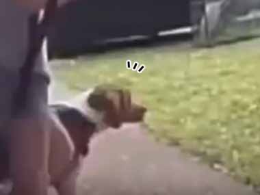 イヌが女の子と一緒に散歩に出かける。家の前の通りに友だち発見♪ → こうなる…