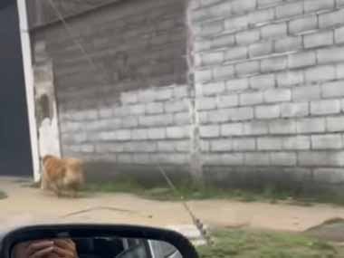 イヌが歩道を歩いていた。なんて良い子なの! → 飼い主と一緒に買い物帰りのようです…