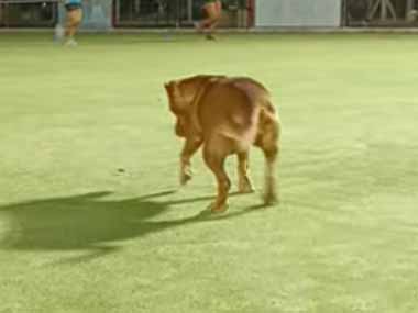 イヌが運動場で遊んでいた。虫を退治するんだワン! → 何度もこうします…