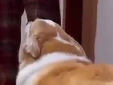 イヌが飼い主を見上げていた。今どんな気持ちなの? → お尻を見ればわかります…
