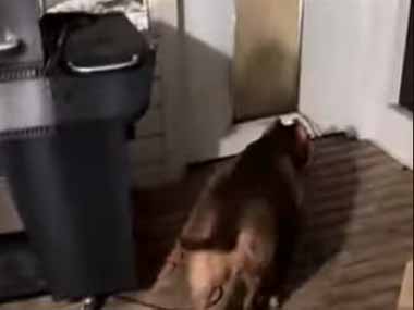 イヌたちが庭で遊ぼうと外に出る。そこには雪だるまが置いてあった → 犬たちはこうなった…