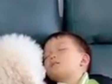 イヌと一緒に遊んでいた幼児が寝てしまった。しょうがないなぁ~ → 優しい犬はこうします…