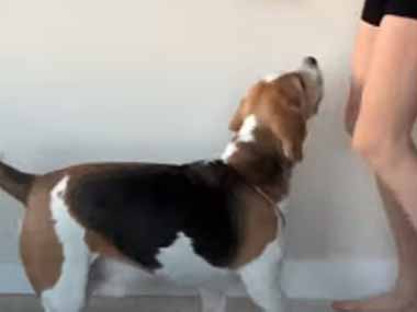 イヌの隣でお姉さんが逆立ちをする。あらよっと♪ → 犬はこうする…