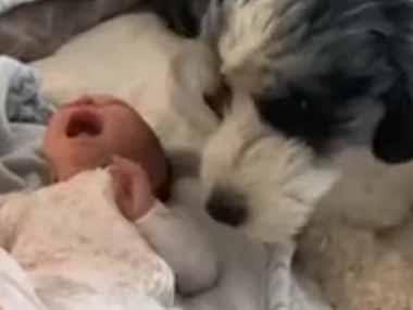 イヌの隣で人間の赤ちゃんが泣き止まない。お手上げだ! → 犬はこうなっちゃう…