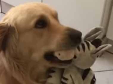 イヌはどこに行くにも「ぬいぐるみ」と一緒だった。ほら、おやつだよ → 犬はこうなる…