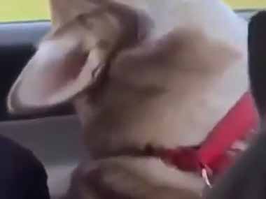 イヌは遊び疲れたの? それとも朝早かったのかな? → 車の中でこうなった…