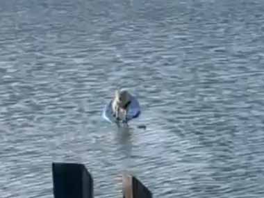 イヌを乗せたボードが海を漂っていた。助けるワン! → 桟橋にいた犬はこうした…